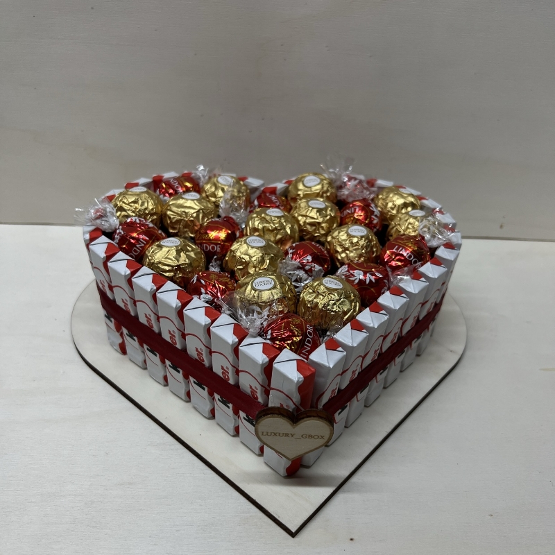 Čokoladni darilni komplet srček je ročno izdelan dekorativni izdelek, primeren kot darilo za rojstni dan, obletnico, valentinovo ali posebno presenečenje. Komplet je oblikovan v srček ter napolnjen z izbranim sladkim polnilom po vaši želji. Stabilna osnova zagotavlja lep videz in varno postavitev darila.