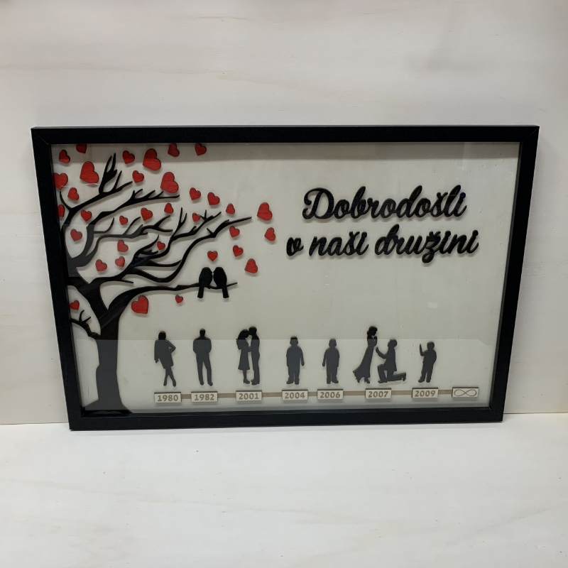 Ob naročilu nam sporočite imena, letnice in druge želene podrobnosti, da ustvarimo popoln družinski spominek!