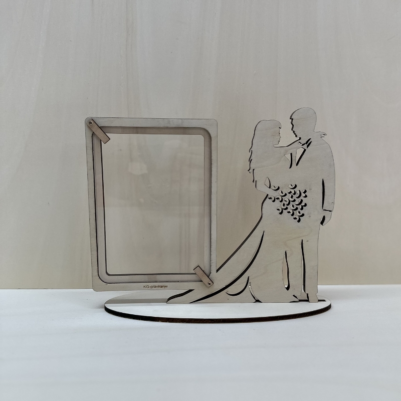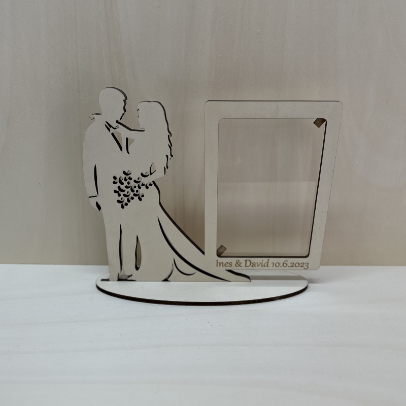 Elegantni personaliziran okvir za sliko z motivom ženina in neveste je popoln spominek na poročni dan. Izdelan iz kakovostnega lesa z možnostjo graviranja imen in datuma poroke. Odlično darilo za mladoporočence ali kot dekoracija na poročni mizi.