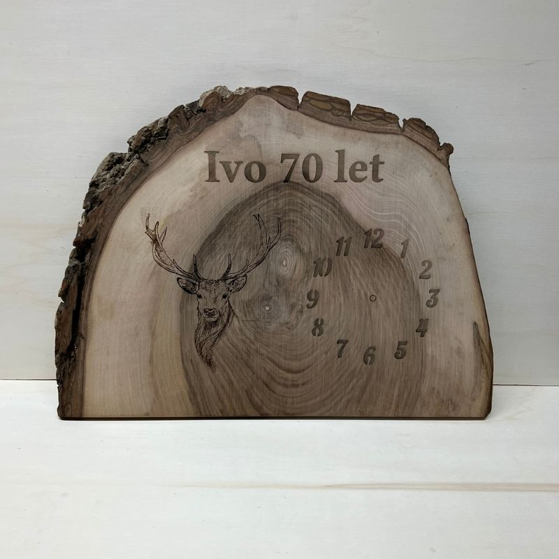 Lesena stenska ura z motivom jelena – personalizirano darilo