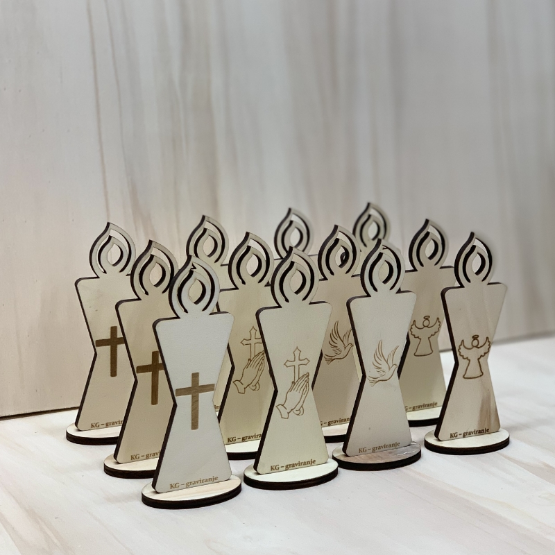 Elegantna lesena sveča je popoln simbol duhovne svetlobe in odlična dekoracija za svečane priložnosti. Na voljo so različne izvedbe – z možnostjo postavitve na podstavek ali za zapičenje.