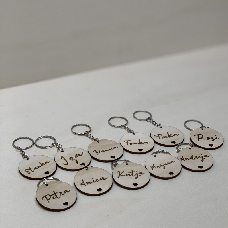 Izdelek ni igrača, namenjen je izključno dekoraciji in uporabi kot obesek za ključe. Les je naravni material, zato lahko pride do manjših odstopanj v barvi in strukturi, kar vsakemu obesku doda edinstven videz. To ni razlog za reklamacijo.