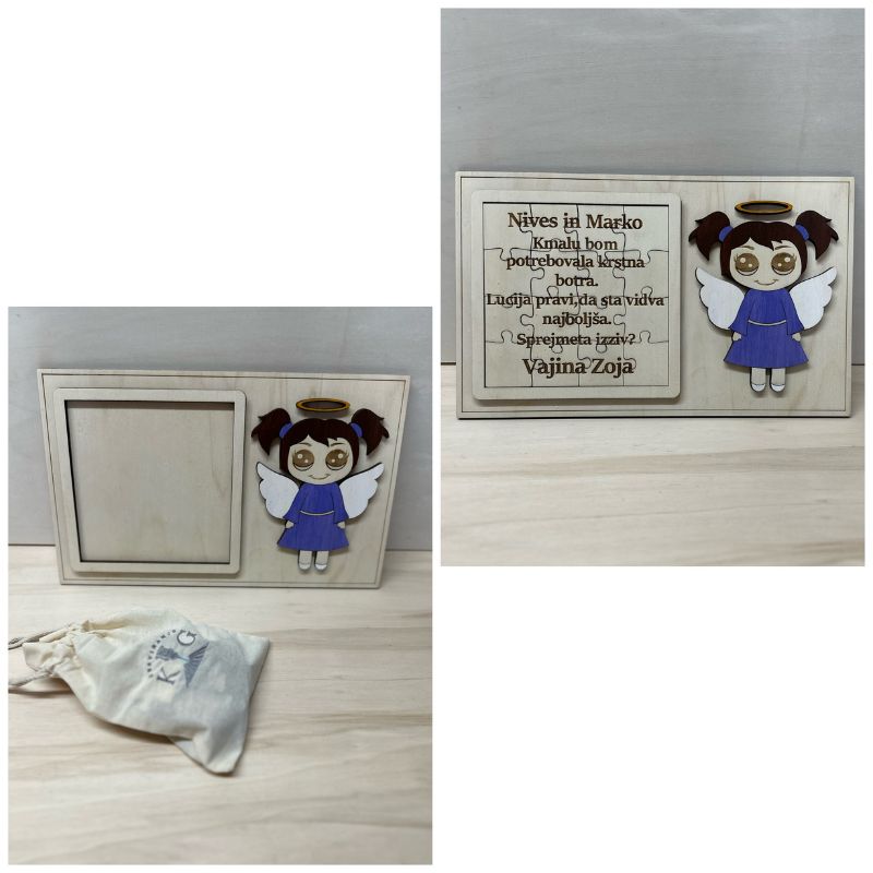 Presenetite bodočega krstnega botra ali botro  s to unikatno leseno sestavljanko! Ko bodo sestavili vse dele, se bo razkrilo prisrčno sporočilo, ki ga bodo za vedno hranili kot čudovit spomin.