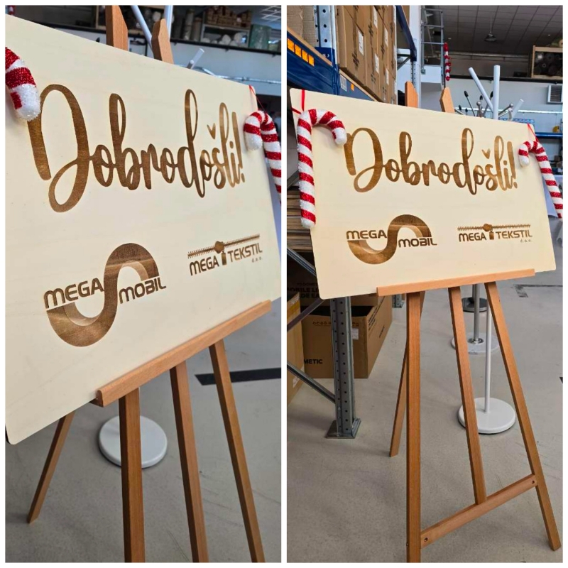 📢 Personalizirana lesena tabla z gravuro – unikatna dobrodošlica za dogodke in podjetja 📢
