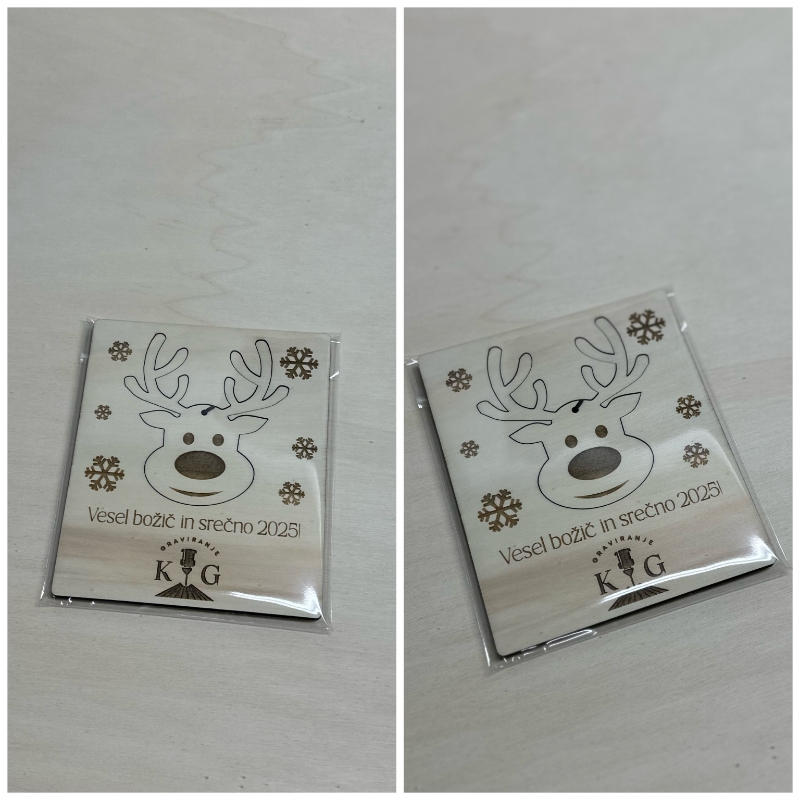 Podarite nekaj posebnega s to unikatno leseno voščilnico, ki bo pustila trajen vtis! Eleganten dizajn s prazničnim motivom in lasersko graviranim osebnim sporočilom naredi to voščilnico popolno za božič, novo leto ali druge posebne priložnosti.