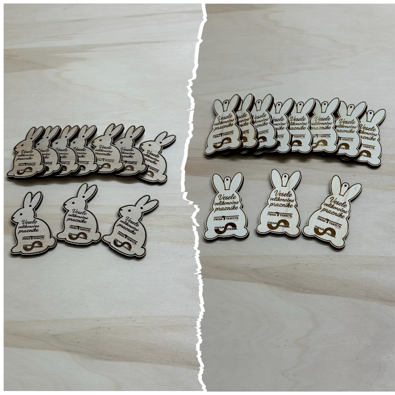 Leseni velikonočni zajčki z gravuro po meri so popolno darilo za poslovne partnerje, sodelavce ali vaše najdražje. Vsak izdelek je narejen po željah stranke – z možnostjo dodajanja logotipa, napisa ali posebnega sporočila.