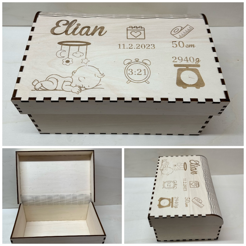 Čudovita personalizirana lesena škatla za shranjevanje prvih otroških spominov – idealno darilo za novorojenčka!