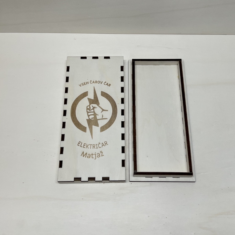 Unikatna lesena škatlica z gravuro je popolno darilo za vsakega električarja. Z motivacijskim napisom »VSEH ČAROV ČAR – ELEKTRIČAR« je idealna izbira za darilo ob zaključku šolanja, obletnici, rojstnem dnevu ali kot poseben poklon za strokovnjake v elektroindustriji.
