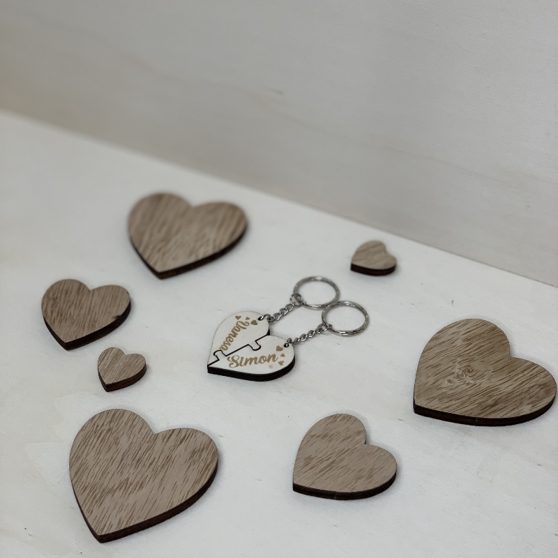 Ta čudovit lesen obesek v obliki srca, sestavljen iz dveh delov, je simbol ljubezni, prijateljstva in povezanosti. Odlično darilo za pare, najboljše prijatelje ali družinske člane, ki želijo imeti delček drug drugega vedno pri sebi.
